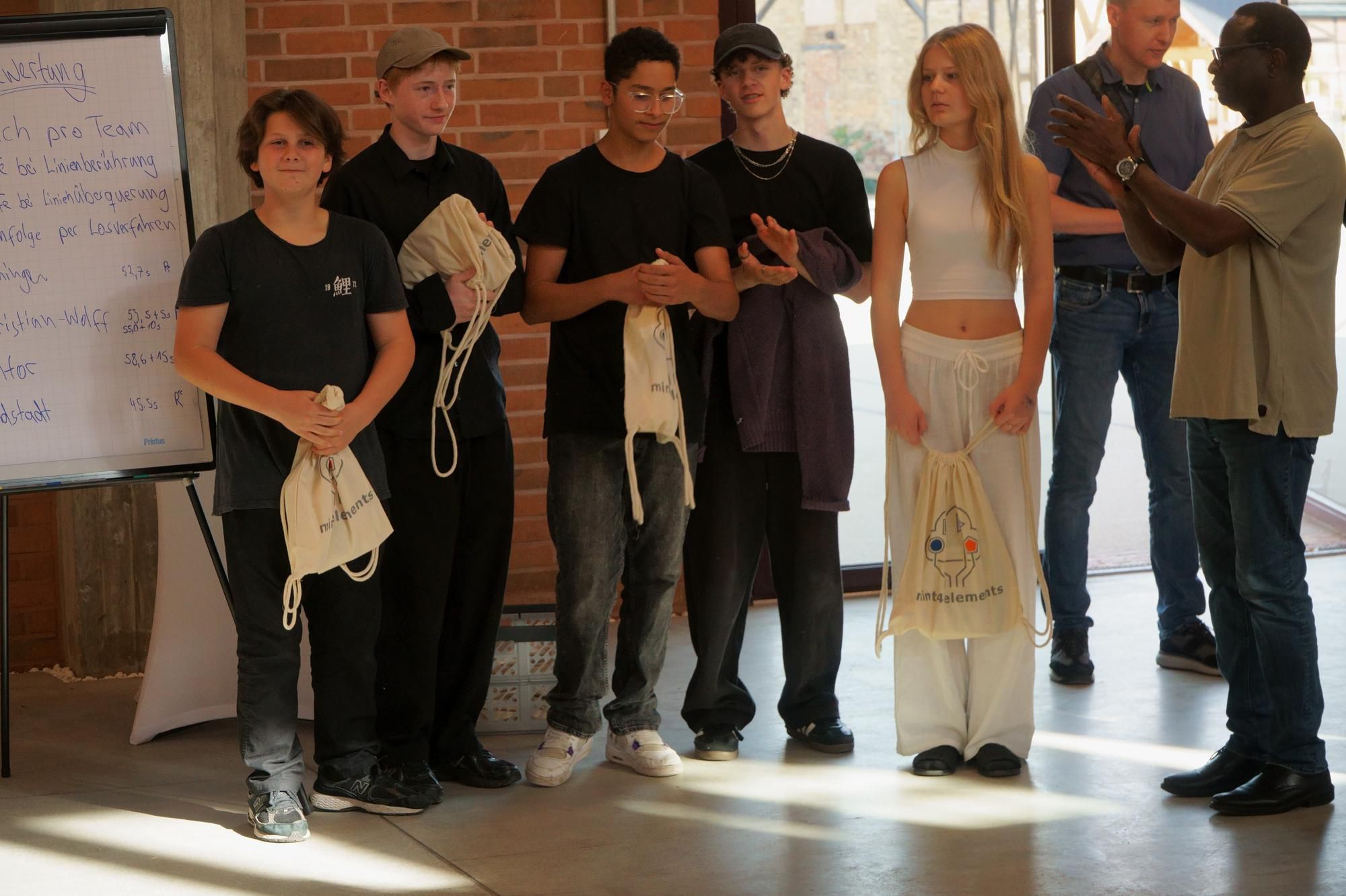 Aus den JIA-Schulen trat je ein Team an, um sich im Wettbewerb einer technischen Aufgabe zu stellen. In diesem Jahr hieß die Aufgabe, Lego-Roboter zu bauen und sie zu programmieren für den Durchlauf eines Parcours in möglichst kurzer Zeit und ohne Abweichungen von der Strecke. Die Schüler mussten mit einem unbekannten Robotersystem und einer unbekannten Programmierungs-App arbeiten. Zur ihrer Aufgabe gehörte es außerdem, nach einer vorgegebenen Skizze ihren Parcours zum Trainieren selbst auf dem Fußboden aufzuzeichnen. Die Aufgabe war nicht trivial. Keines der Teams konnte fehlerfrei den Parcours befahren. Eine moderate Juryentscheidung hat die zwei Teams zum Sieger gekürt, deren Roboter den Parcours bis zum Ende befahren haben. Das waren die Teams vom Christian-Wolff und vom Georg-Cantor-Gymnasium. Auf Platz zwei gelangte das Lyonel-Feininger-Gymnasium, Platz drei belegte das Südstadtgymnasium.