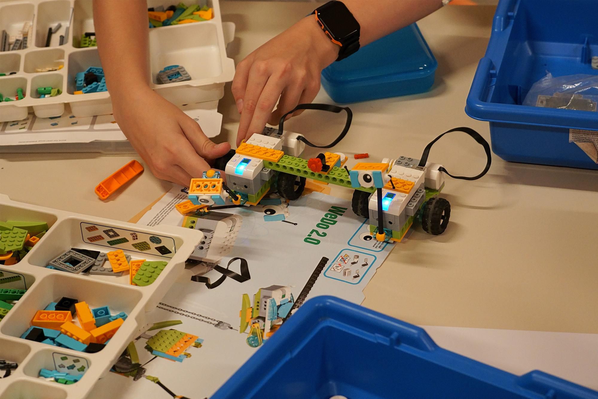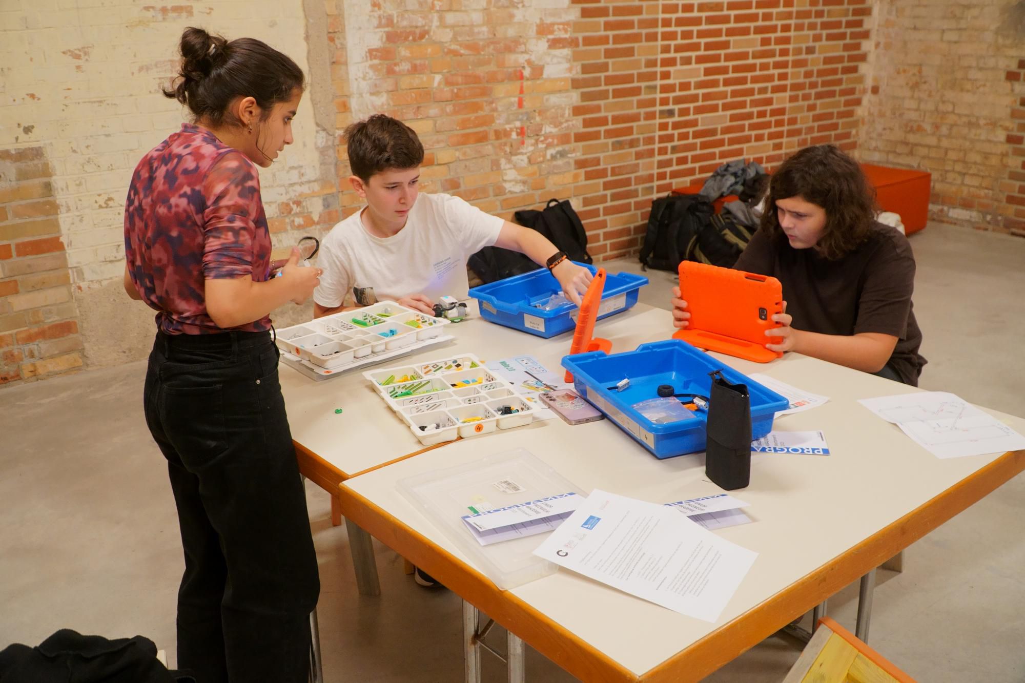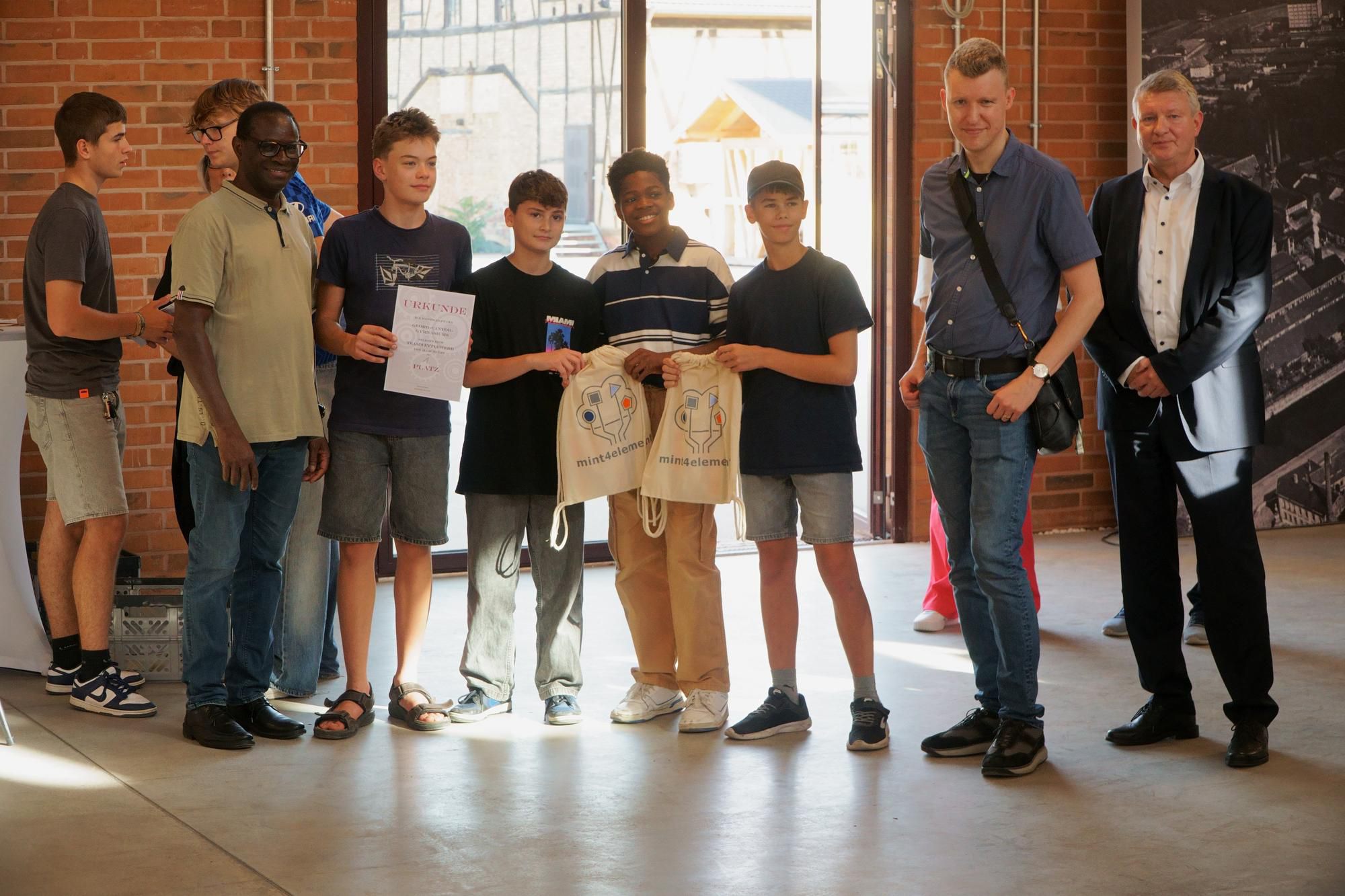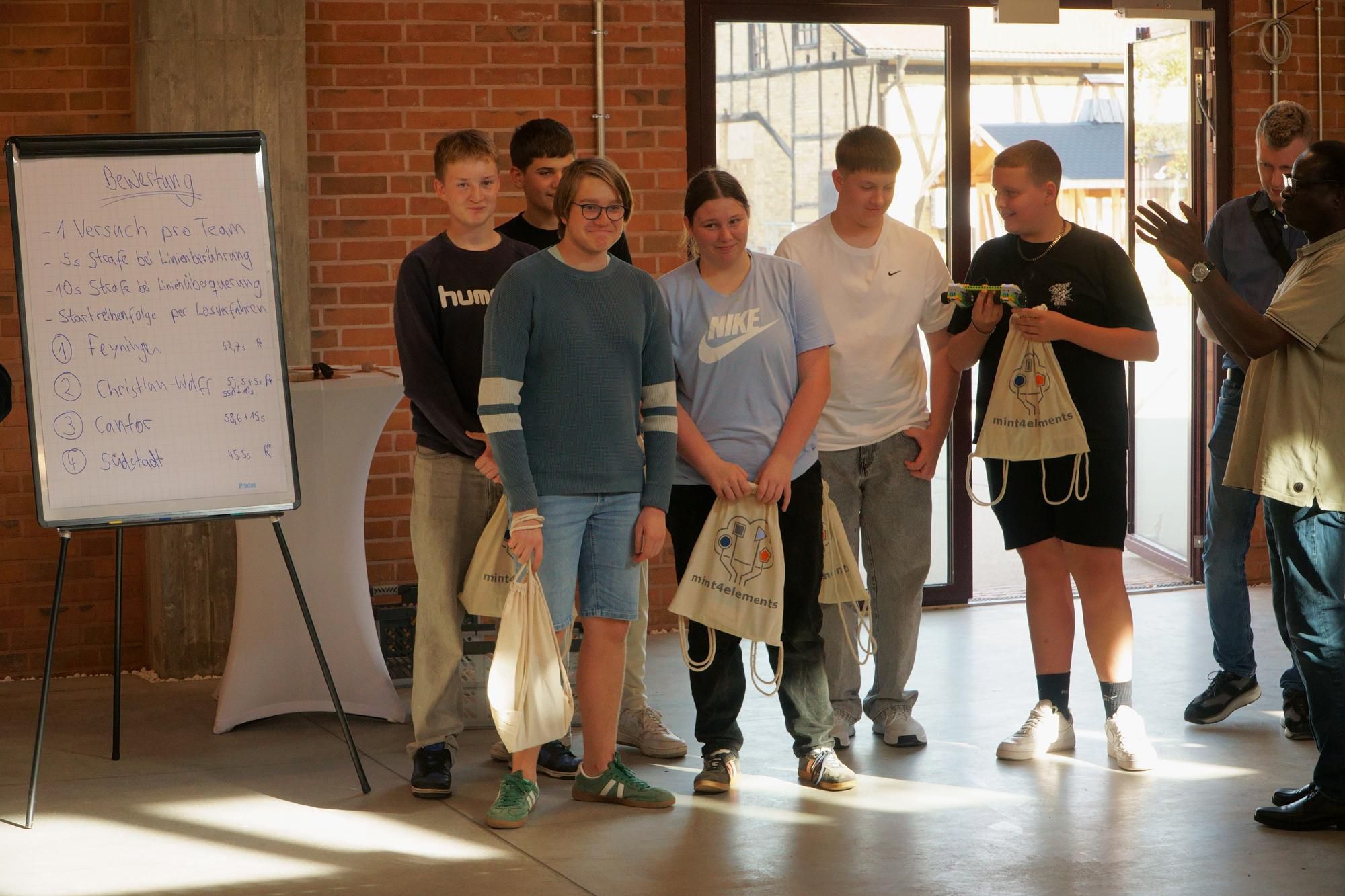 Aus den JIA-Schulen trat je ein Team an, um sich im Wettbewerb einer technischen Aufgabe zu stellen. In diesem Jahr hieß die Aufgabe, Lego-Roboter zu bauen und sie zu programmieren für den Durchlauf eines Parcours in möglichst kurzer Zeit und ohne Abweichungen von der Strecke. Die Schüler mussten mit einem unbekannten Robotersystem und einer unbekannten Programmierungs-App arbeiten. Zur ihrer Aufgabe gehörte es außerdem, nach einer vorgegebenen Skizze ihren Parcours zum Trainieren selbst auf dem Fußboden aufzuzeichnen. Die Aufgabe war nicht trivial. Keines der Teams konnte fehlerfrei den Parcours befahren. Eine moderate Juryentscheidung hat die zwei Teams zum Sieger gekürt, deren Roboter den Parcours bis zum Ende befahren haben. Das waren die Teams vom Christian-Wolff und vom Georg-Cantor-Gymnasium. Auf Platz zwei gelangte das Lyonel-Feininger-Gymnasium, Platz drei belegte das Südstadtgymnasium.